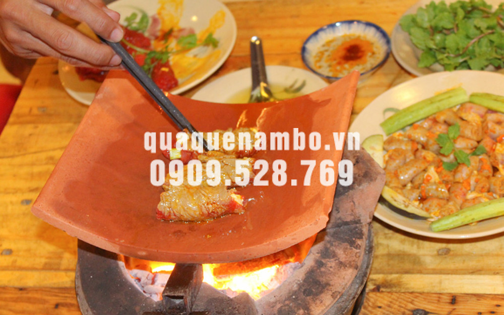 Bò nướng ngói còn được gọi là bò nướng mỡ chài Bình Dương. Đây là món đặc sản thơm ngon bạn nên thử khi ghé thăm vùng này. Thịt bò được bọc mỡ chài, khi nướng sẽ dậy vị béo thơm của mỡ và độ ngọt của thịt, chấm cùng nước sốt chuyên biệt càng thêm hấp dẫn.