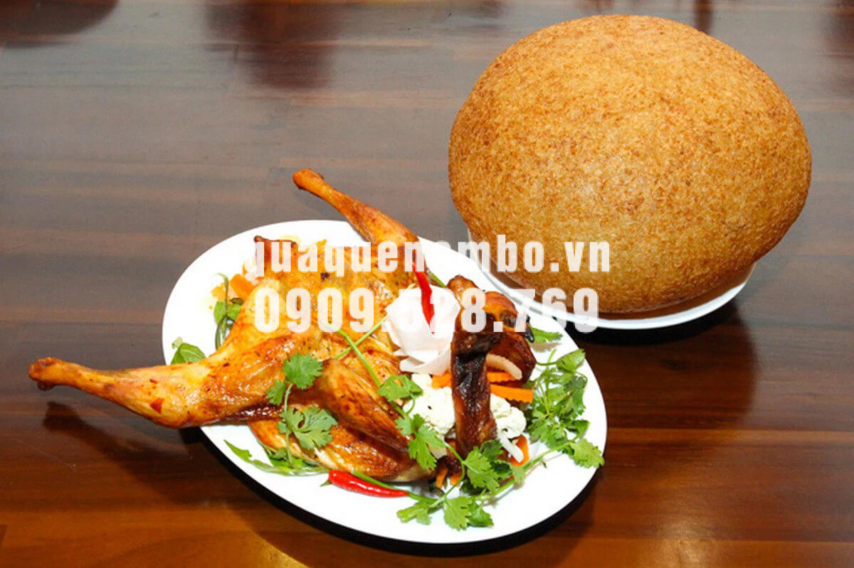 Món ăn này được chế biến rất đặc biệt với gà bọc nguyên con có tẩm ướp gia vị bên trong, sau đó đem chiên vàng giòn thật đều. Khi thưởng thức gà quay xôi phồng, bạn sẽ cảm nhận được thịt gà bên trong chín mềm, lớp xôi giòn rụm, chấm với nước sốt theo công thức riêng của người dân địa phương để tăng thêm phần hấp dẫn.