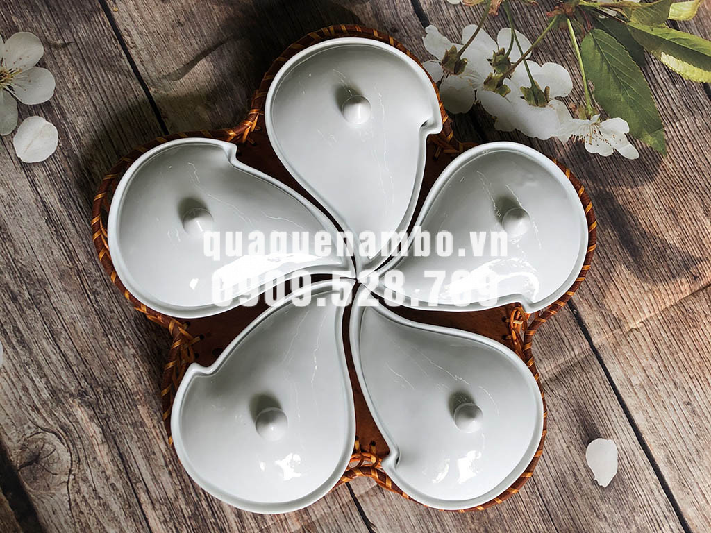 Khay mứt sứ men trắng dáng hoa ban 5 cánh