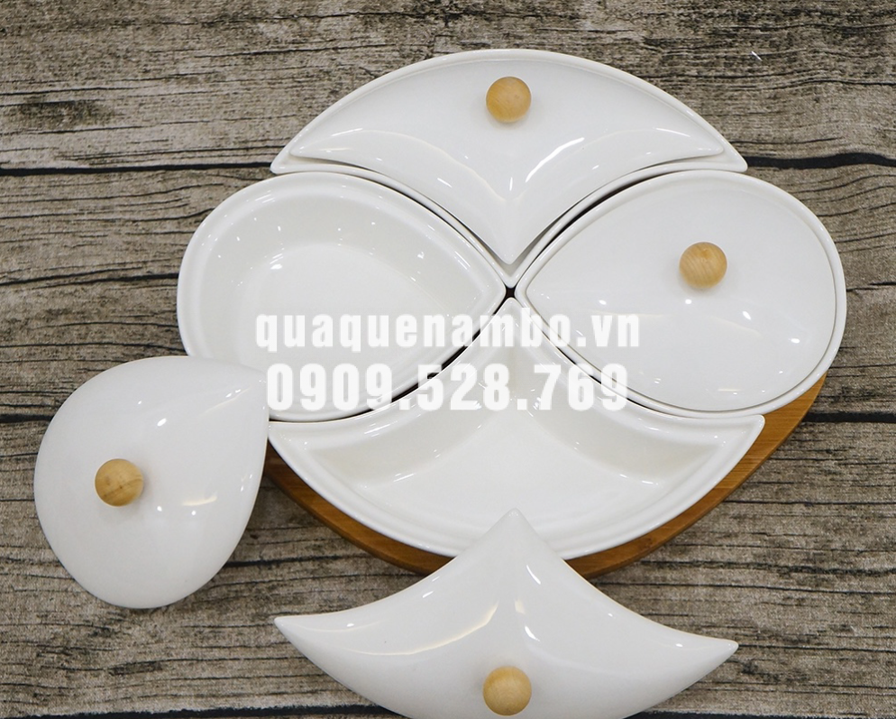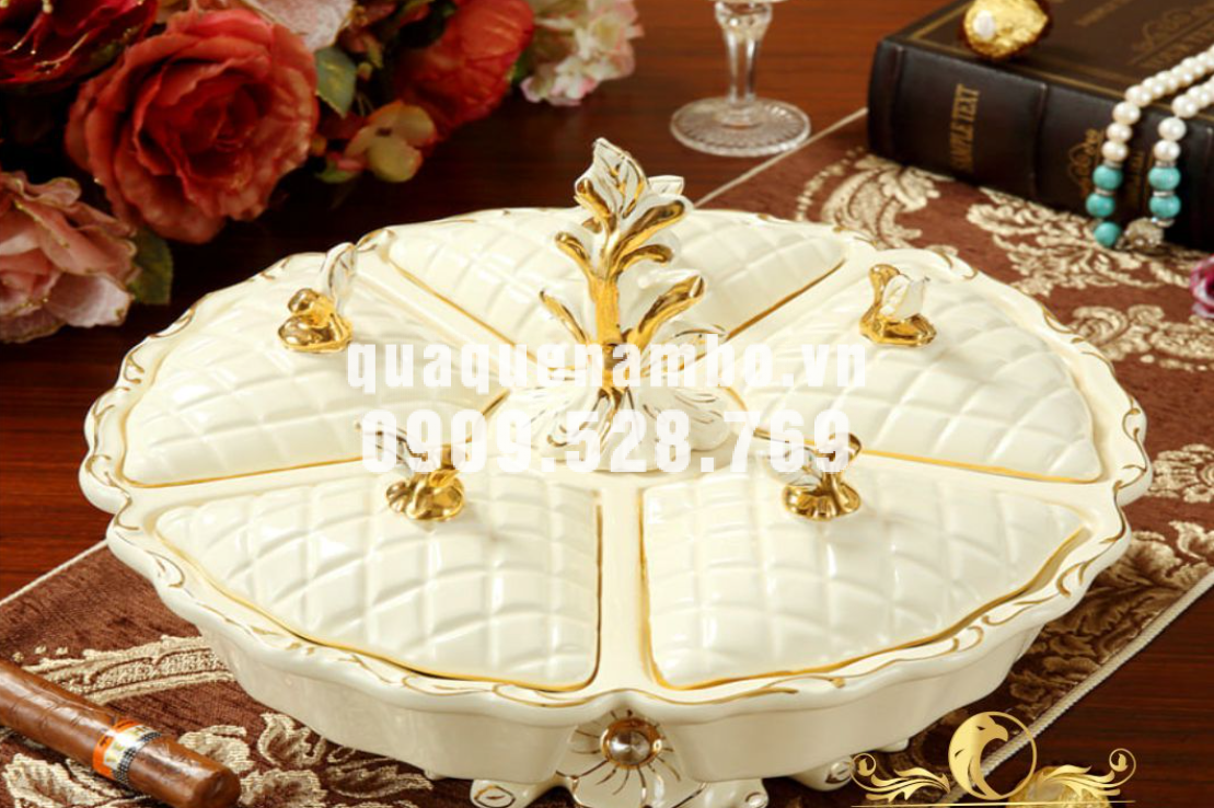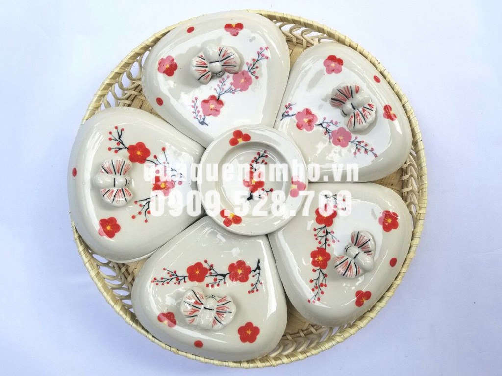 Khay đựng bánh kẹo Tết bằng sứ sang trọng, hấp dẫn