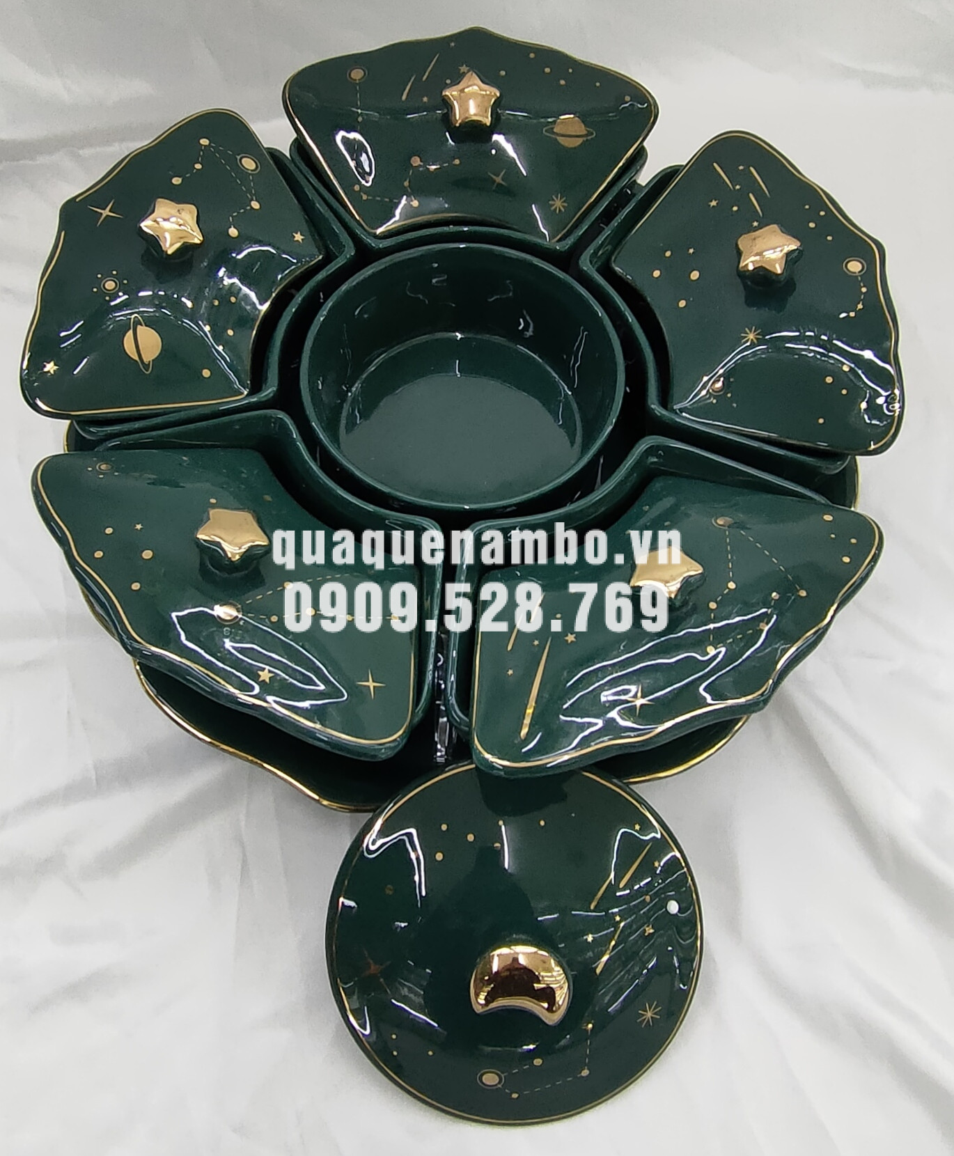 3. Khay đựng bánh kẹo Tết sứ xoay tròn ngôi sao