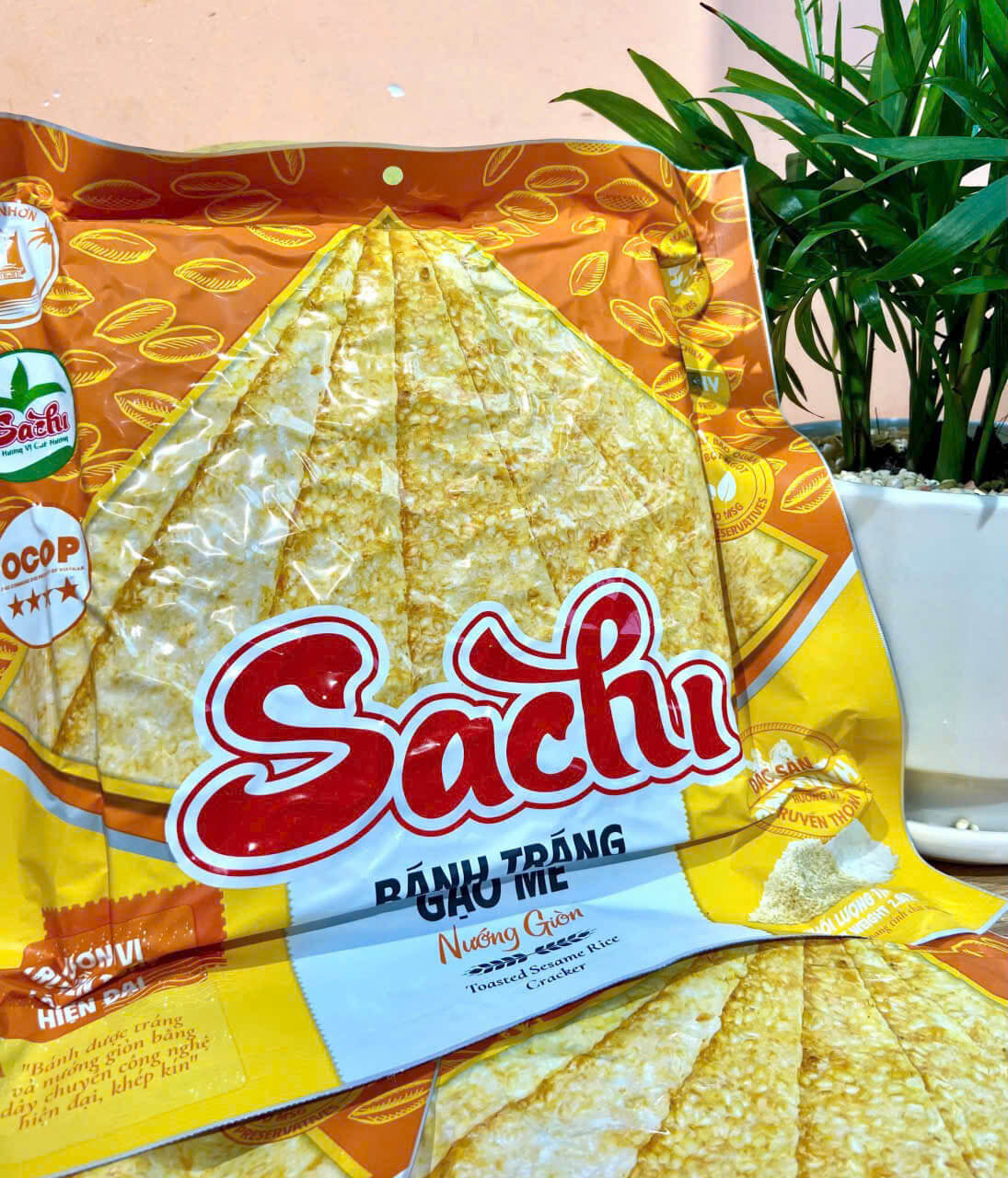 Bạn là tín đồ của món ăn vặt giòn rụm, đậm đà nhưng vẫn quan tâm đến chất lượng và vệ sinh? Bánh Tráng Nướng SACHI chính là lựa chọn hoàn hảo! Với công nghệ sản xuất hiện đại và sự kết hợp của hai hương vị được yêu thích nhất là Mè và Dừa, SACHI mang đến trải nghiệm thưởng thức hoàn toàn mới, tiện lợi và an toàn.