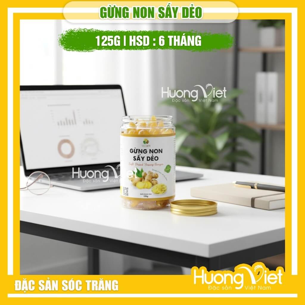 Gừng non sấy dẻo 123 FARM là lựa chọn hoàn hảo cho những ai yêu thích vị gừng nhưng vẫn muốn cảm giác mềm – dẻo – cay nhẹ, dễ ăn và tiện lợi mỗi ngày. Sản phẩm được chế biến từ gừng non tươi, sấy dẻo giữ trọn hương vị tự nhiên, phù hợp làm snack hoặc dùng trong nhiều cách khác nhau.