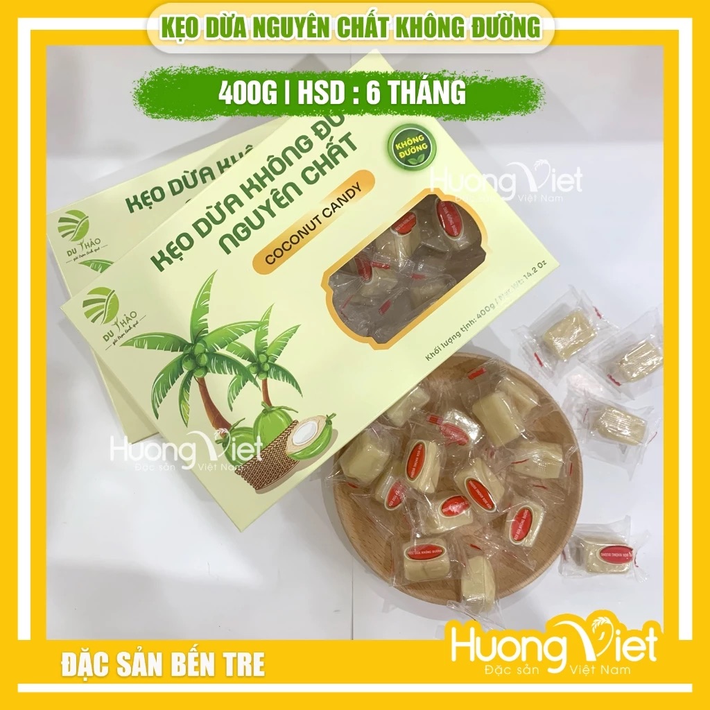 Kẹo Dừa Không Đường Nguyên Chất Du Thảo Hộp 400g