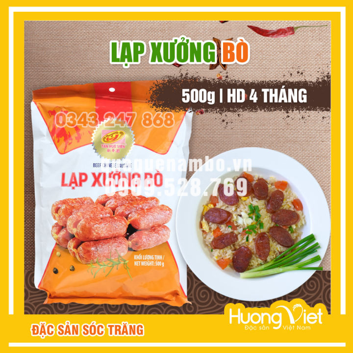 Lạp xưởng là món ăn rất quen thuộc, thuận tiện vì dễ bảo quản và chế biến. Chỉ cần chiên, hấp hay nướng qua rồi thái lát mỏng là có đĩa lạp xưởng thơm phức màu nâu đỏ ngon mắt. Đặc biệt, Lạp xưởng bò nếu được nướng trên lửa than hồng cuốn hút người ăn hơn cả, vì có màu sắc đẹp mắt và hương thơm đặc trưng.
