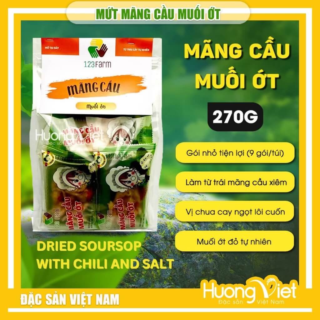 Mãng cầu muối ớt sấy dẻo là món ăn vặt được yêu thích nhờ sự kết hợp hài hòa giữa vị chua tự nhiên của mãng cầu, vị mặn cay đậm đà của muối ớt, tạo nên hương vị kích thích vị giác, ăn hoài không ngán. Sản phẩm được làm từ 100% trái cây tự nhiên, sấy dẻo bằng công nghệ hiện đại, giữ trọn độ dẻo mềm và hương vị đặc trưng của trái cây.