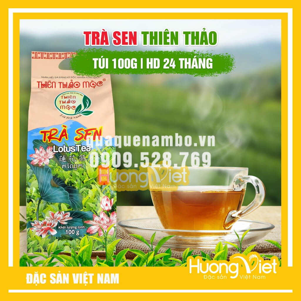 Trà sen Thiên Thảo thượng hạng được sản xuất từ nguyên liệu trà tốt nhất Lâm Đồng với hương sen tự nhiên và hương thảo mộc, cho ra sản phẩm trà xanh hương sen độc đáo, hương thơm tinh khiết, vị chát dịu. Với nhiều công dụng từ lá trà xanh, trà sen Thiên Thảo sẽ thích hợp là loại trà uống được mỗi ngày.
