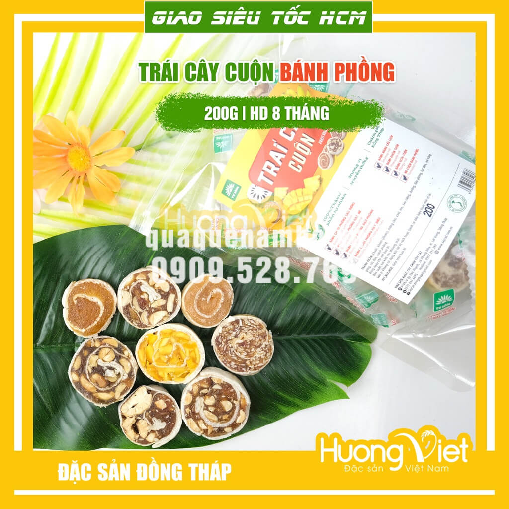 Được cách tân từ món mứt truyền thống, trái cây cuộn Tư Bông là sản phẩm nức tiếng ở “xứ sở sen hồng” Đồng Tháp. Với lớp vỏ bánh phồng nếp giòn bao bọc nhân mứt trái cây bên trong như chuối, khóm/thơm, mãng cầu xiêm, xoài, me…, trái cây cuộn Tư Bông ít ngọt, tiện dụng, bao bì hiện đại, là món ăn dân dã khiến bao người thưởng thức mãi vấn vương.